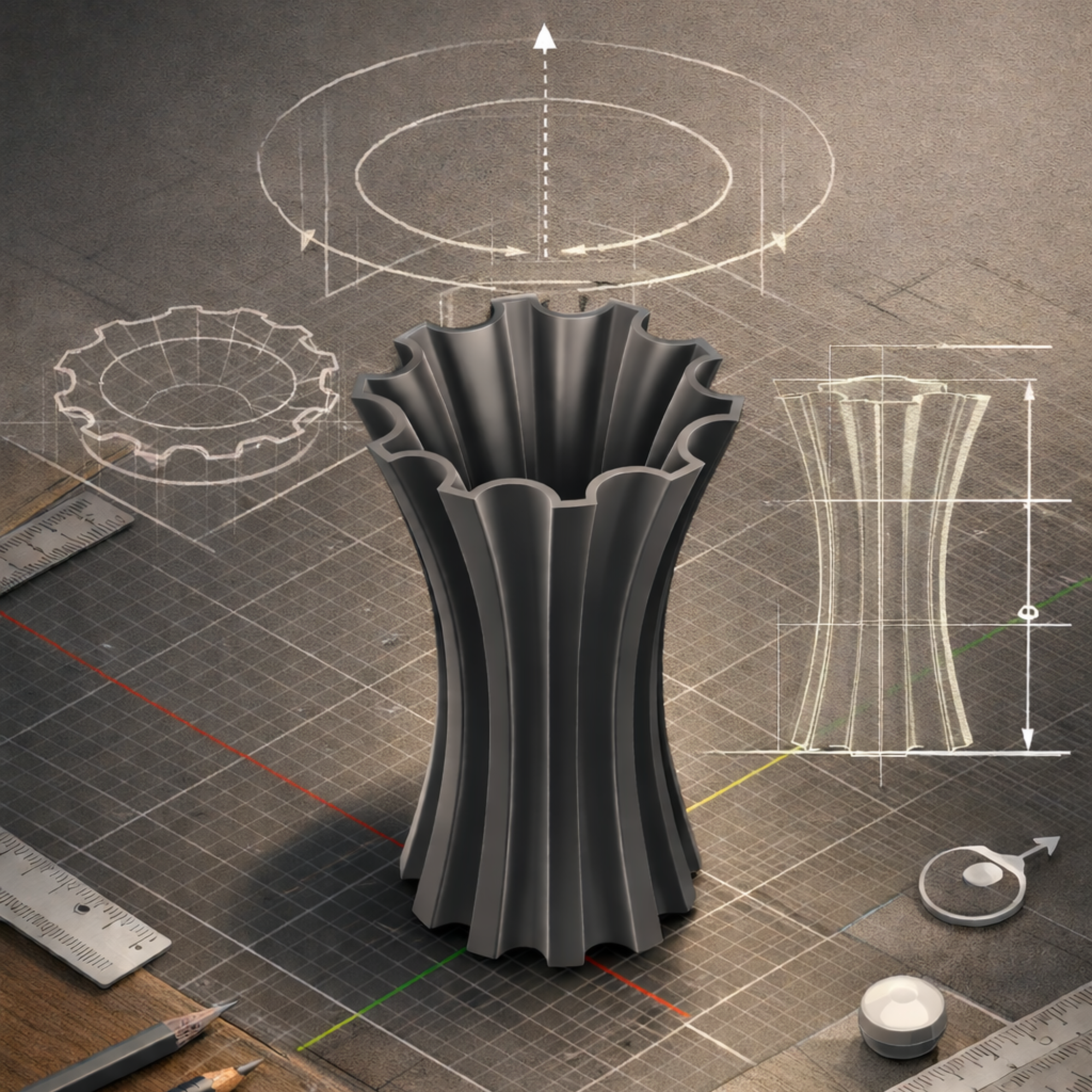 Every BrownVerse design begins as an idea shaped through a precise digital design process. Using advanced modelling tools, each form is carefully developed, allowing geometry, proportion, and detail to be refined before the object is physically created. This stage allows experimentation with structure, balance, and visual presence until the design reaches its intended form.
